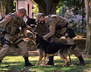 Ele acrescenta que a raça dos cães mais utilizados para o adestramento são ‘’Pastor Alemão, Rottweiler, Labrador, porém a PM trabalha mais com o Pastor-belga Malinois que é o que tem maior capacidade de desenvolver até três atividades”.