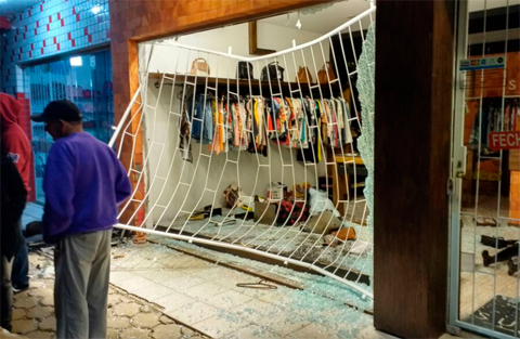A mercadoria foi recuperada, mas fica o prejuízo em algumas peças e na vitrine da loja, que foi totalmente destruída.