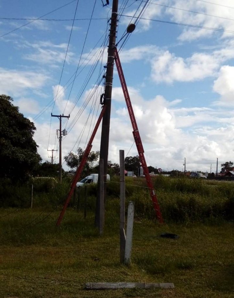 Segundo a corporação, um homem, M.C.G., 44 anos, estava fazendo reparos em cabos de internet (fibra óptica), próximo à rede elétrica de alta tensão. Durante os trabalhos, o técnico foi eletrocutado causando queimaduras em ambos os pés, na região dos dedos mínimos.