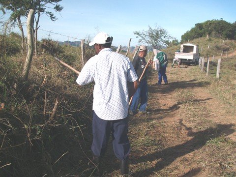 Após recuperar de grande parte da malha viária, com o alargamento das ruas e colocação de saibro, agora a ordem é capinar e roçar. Praticamente todas as ruas de Pescaria Brava são de chão batido.