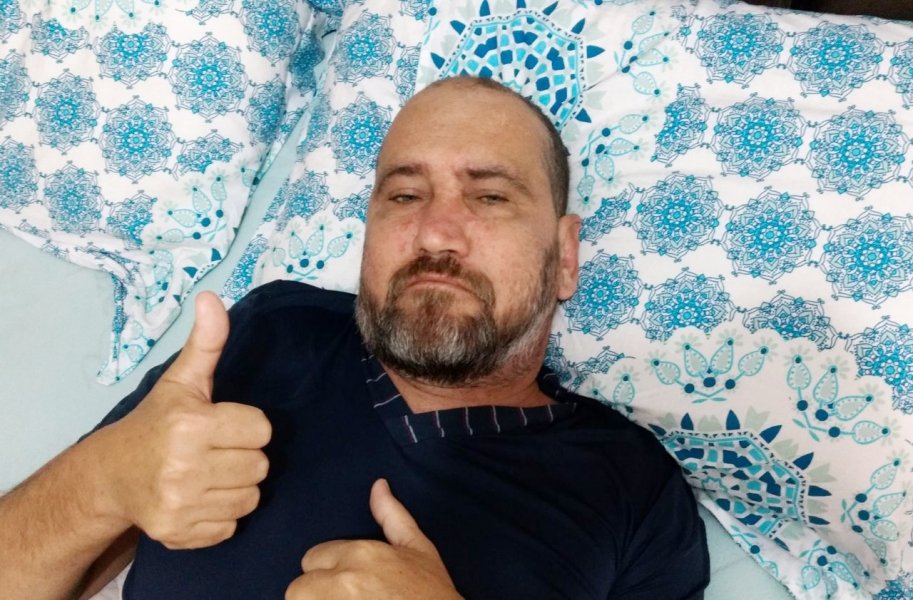 A esposa admira a determinação do marido, que tem lutado para enfrentar a câncer. “Meu esposo tem dificuldades pra realizar tarefas simples, como caminhar e comer. Perdeu muita massa muscular, tem inflamações frequentes nas unhas, aftas na boca, assaduras, pequenos calos nas nádegas, sofre muito com enjoos, entre outros problemas. Mas em nenhum momento se questionou do “porque ele”. Sempre se manteve forte, lutando bravamente”, relata.
