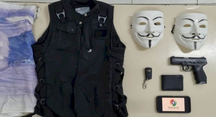 Foi encontrado com eles um simulacro de arma de fogo. Diante do flagrante, ambos foram presos e conduzidos à delegacia de Polícia Civil para os devidos procedimentos pertinentes.