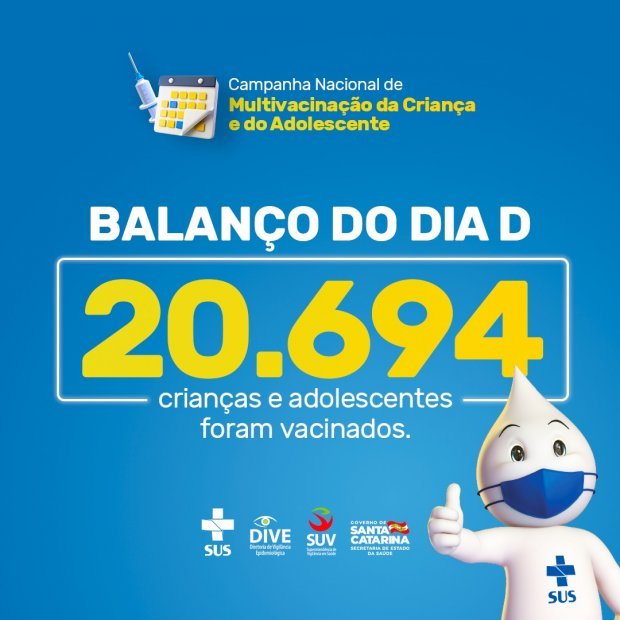 De acordo com levantamento da Diretoria de Vigilância Epidemiológica, com base nos dados de vacinação enviados pelos municípios catarinenses, até o momento, 88.606 crianças e adolescentes tiveram a caderneta de vacinação atualizada durante a Campanha. Na primeira semana foram vacinadas 24.195 crianças e adolescentes; na segunda 43.717 e, somente no Dia D, foram 20.694 crianças e adolescentes.