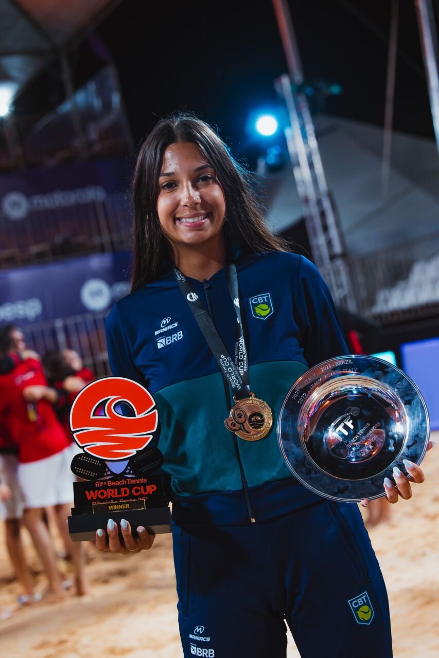 Atual 47ª colocada no ranking profissional mundial e 2ª no ranking juvenil, a catarinense é considerada uma das maiores promessas do beach tennis brasileiro para os próximos anos.