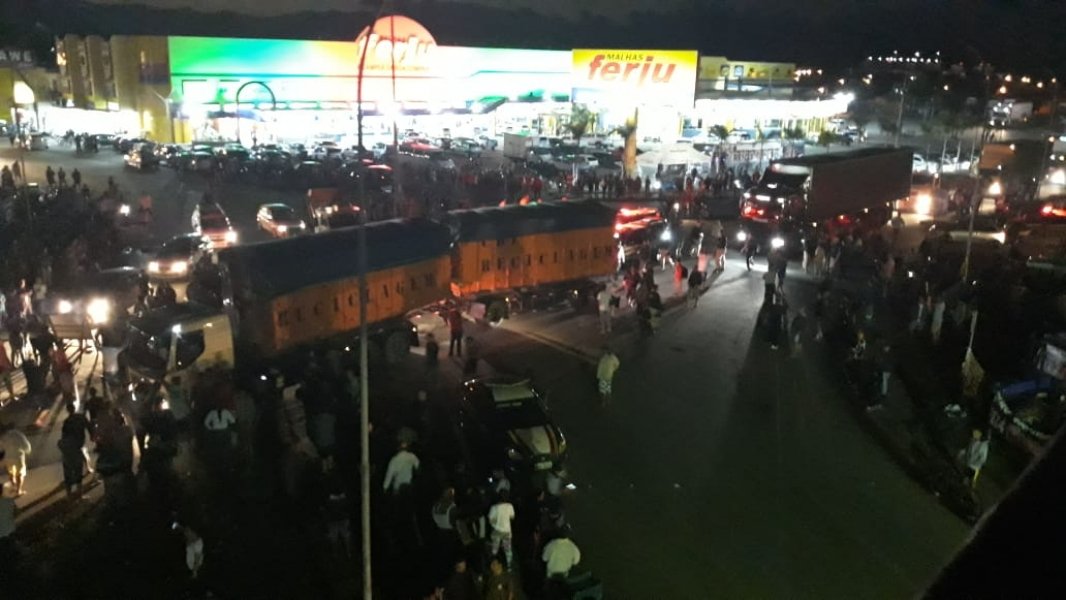 A Polícia Rodoviária Federal (PRF) montou um comboio, no fim da tarde desta terça-feira (29), para escoltar os caminhoneiros na BR-101, em um trecho no bairro Nova Brasília, em Imbituba. Conforme a corporação, os profissionais manifestaram o desejo de deixar os pontos de bloqueio na rodovia, entretanto, foram coagidos por lideranças a permanecer no local.