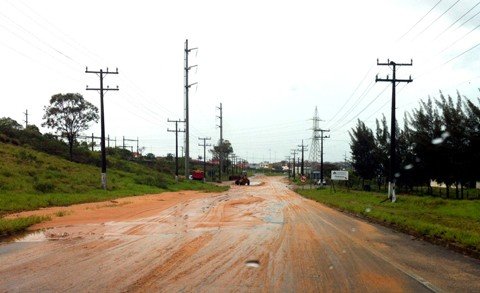 No acesso ao Caic, sentido Nova Brasília – Centro, o asfalto cedeu junto ao meio fio. Nesta semana, as secretarias de desenvolvimento regionais sul e norte da prefeitura iniciaram o mutirão de recuperação das ruas nas localidades pertencentes a cada pasta.