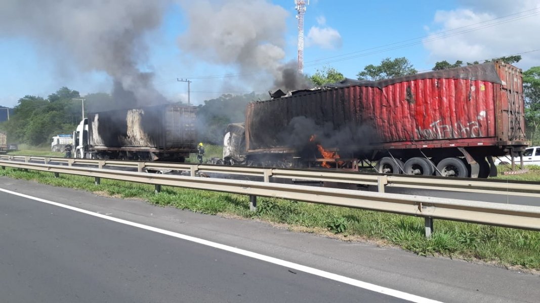 De acordo com a PRF, a ocorrência foi sentido Sul do KM 398 da BR- 101, envolvendo 3 caminhões que viajavam em comboio transportando sucata. Os 3 veículos têm placas de Araucária (PR).