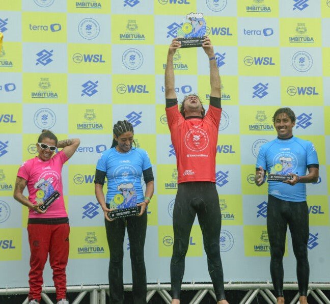 Nem mesmo a chuva forte impediu a festa do surfe na Praia da Vila, em Imbituba, durante a terceira etapa do Circuito Banco do Brasil de Surfe 2025. O catarinense Matheus Navarro conquistou a vitória em casa com virada emocionante no último minuto.