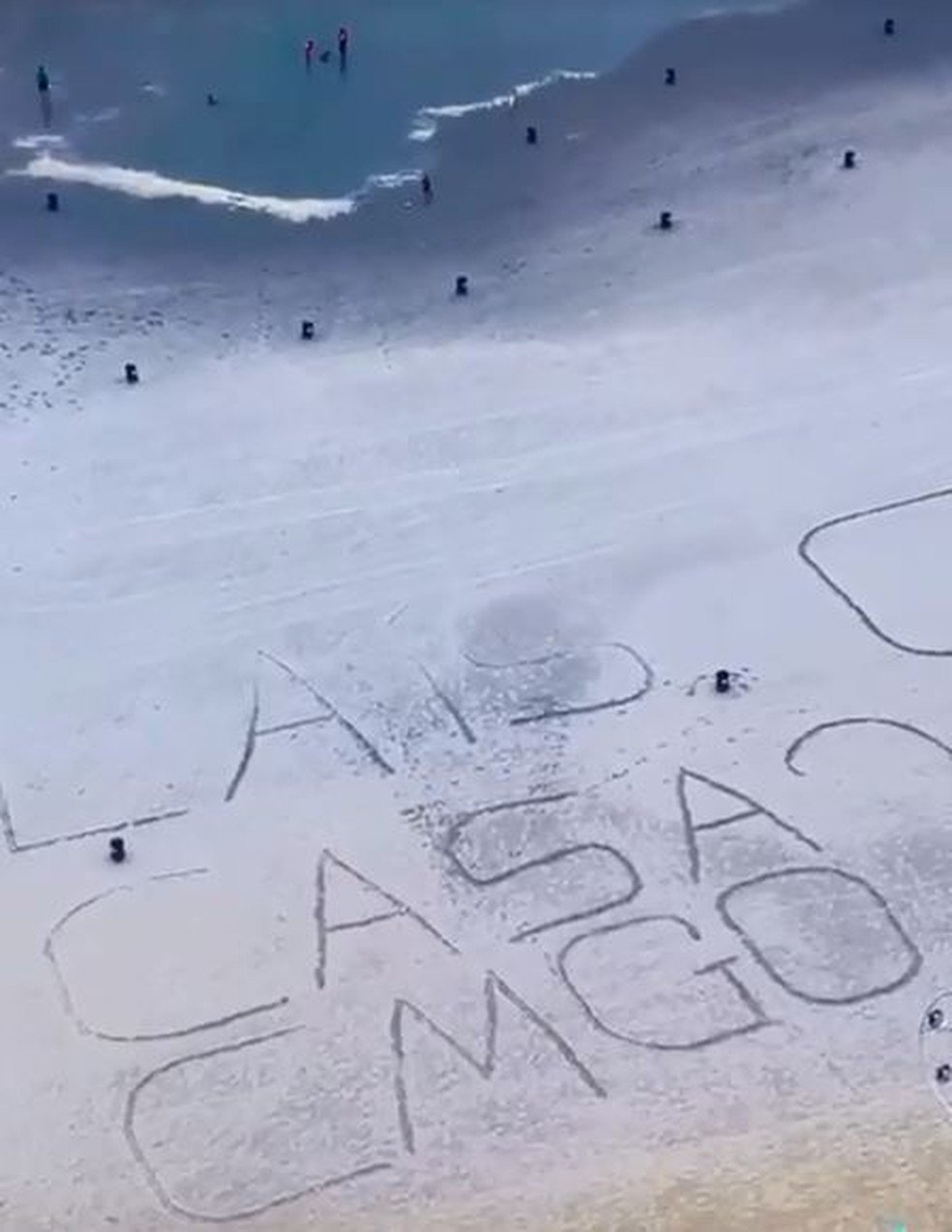 A mensagem estava na faixa de areia da Praia Central, que recentemente passou por megaobra de alargamento.