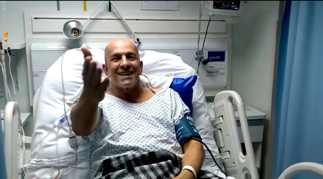 Cleia disse que o marido segue em monitoramento pela equipe médica e passou a noite bem. Ela não pode ficar porque ele ainda não foi para o quarto.