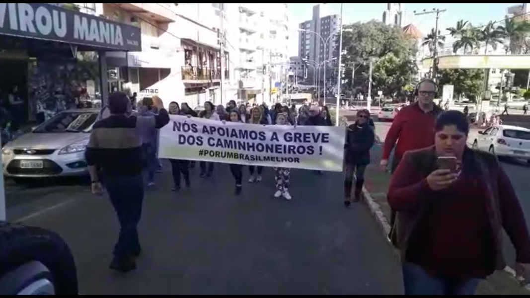 Ação aconteceu no centro da cidade. O manifesto continua com o impedimento da passagem de caminhões no trecho da rodovia, próximo ao portal da cidade qye dá acesso à Braço do Norte.