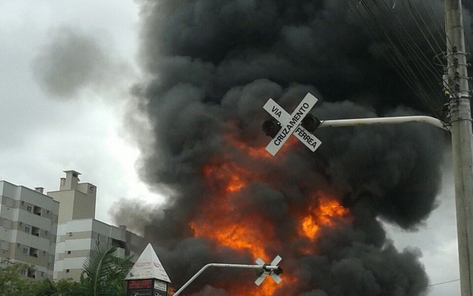 Bombeiros de Içara, Criciúma e Morro da Fumaça combatem o incêndio desde o meio-dia desta quarta-feira (10). O depósito da empresa fica localizado na rua Procópio Lima, esquina com a Coronel Marcos Rovaris, no Centro de Içara.