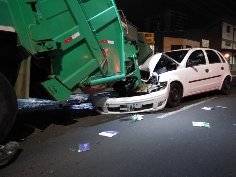 Um jovem de 22 anos bateu um Chevrolet Corsa contra um caminhão da coleta de lixo na madrugada deste sábado (18) na avenida Centenário, em Criciúma. O acidente ocorreu por volta das 2 horas, próximo ao Chiquinho Sorvetes (apenas referência), na área central da cidade.