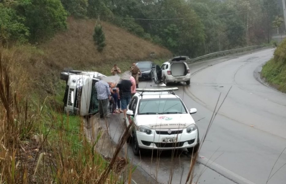 Uma caminhonete com placas de Lauro Müller tombou na SC-446, entre Lauro Müller e Treviso na tarde desta terça-feira. De acordo com a Polícia Militar de Lauro Müller, que atendeu à ocorrência, um outro veículo atingiu a caminhonete.