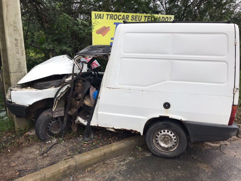 Um motorista de 39 anos ficou preso às ferragens após perder o controle da direção e colidir um veículo Fiat Fiorino, com placas de Criciúma, contra um poste na rua João Netto, no bairro Recanto Verde, em Criciúma. O acidente de trânsito foi registrado por volta de 12h15 desta segunda-feira (2) e atendido pelo Corpo de Bombeiros e Polícia Militar (PM).