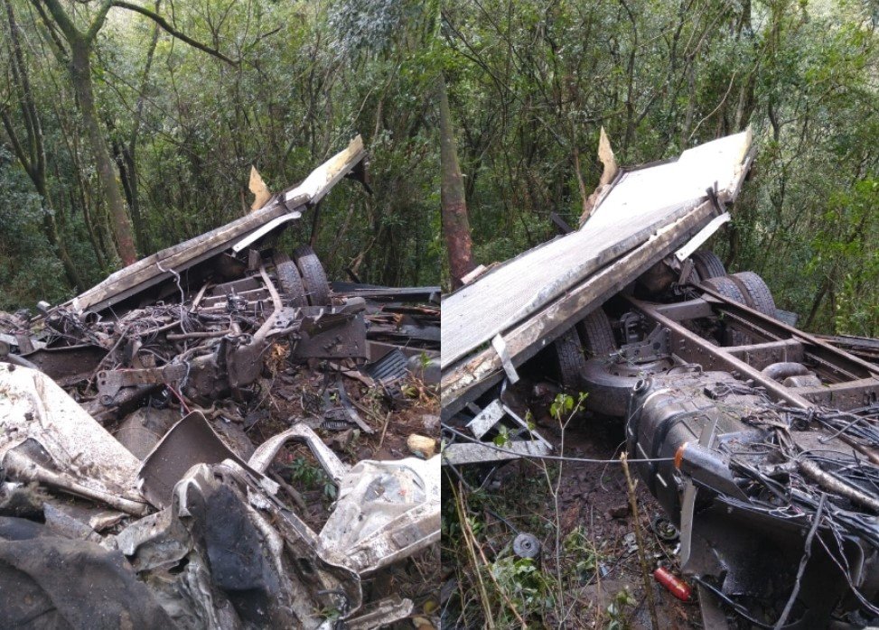 Foi uma saída pista seguida de queda em abismo. O motorista e o caminhão ainda não foram identificados. Há informações ainda não oficiais de que o veículo pode ser de Santa Cecília.