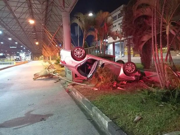 O veículo seguia na Avenida Centenário, sentido Pinheirinho/Próspera, quando o condutor teria perdido o controle, colidido contra as grades de proteção e capotado o carro dentro do Terminal. A Polícia Militar (PM) foi acionada para atender a ocorrência.