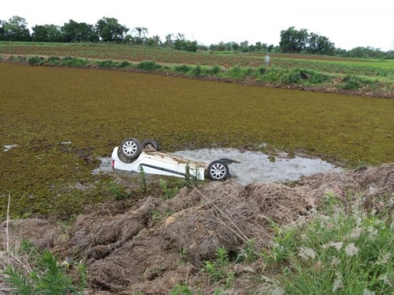 Um carro caiu dentro de um açude após a condutora perder o controle da direção e sair da pista, na SC-447, na comunidade de Limeira, em Meleiro. O acidente ocorreu por volta das 15h30 deste domingo (19).