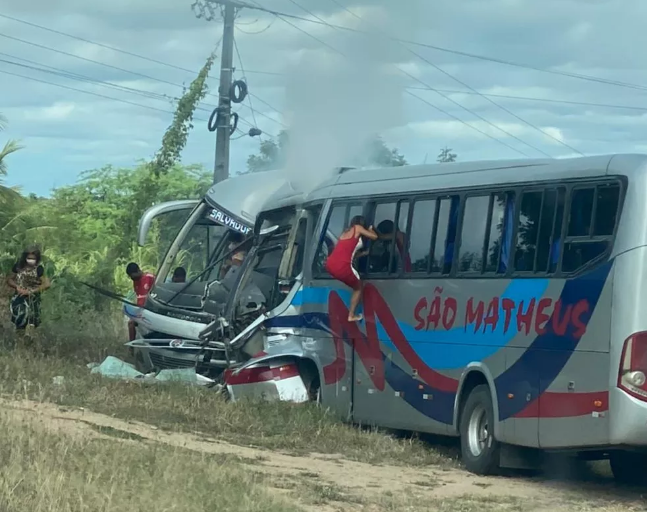 Um dos veículos pegou fogo após a colisão. Os dois motoristas ficaram presos às ferragens e morreram carbonizados. A Polícia Rodoviária Estadual (PRE) da Bahia ainda não confirmou a quantidade de pessoas feridas. O resgate foi feito por equipes dos Anjos da Vida, que são bombeiros voluntários da região.
