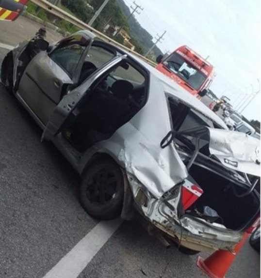 A mulher foi encaminhada ao hospital pela equipe do Corpo de Bombeiros, enquanto os demais ocupantes foram atendidos pela concessionária CCR Via Costeira.