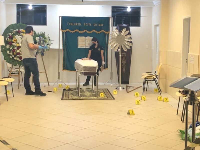 Ao menos 15 tiros foram disparados dentro da capela mortuária São Sebastião, no bairro Iririú. Ela chegou a ser socorrida e encaminhada ao hospital, mas morreu minutos depois.