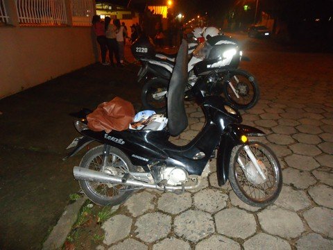 Ele desceu de uma Sundown preta, com placa da Cidade Azul. Ao ser assediada, a mulher gritou, o homem fugiu e abandonou o veículo. Os policiais constataram que a motocicleta havia sido furtada no mesmo dia. Rondas foram feitas, mas o suspeito não foi localizado.