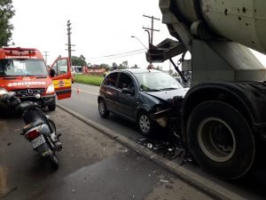 O motorista do Ford, de Içara, saiu ileso. A mulher foi socorrida pelo Corpo de Bombeiros Militar da cidade e levada para o Hospital São Donato.