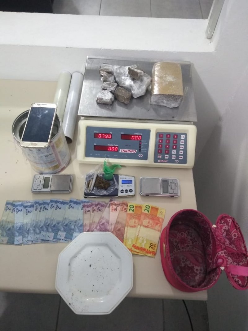 Ao ver a guarnição, a mulher tentou fugir e foi abordada. Com o apoio do canil foram encontrados mais entorpecentes na casa. Ela foi conduzida à delegacia par os devidos procedimentos.