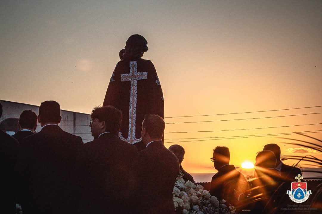 Ao chegar ao Santuário, a imagem de Nossa Senhora foi homenageada por um helicóptero que lançou pétalas de rosas, encerrando com emoção e beleza mais uma edição da centenária tradição de fé da Cidade das Avenidas.