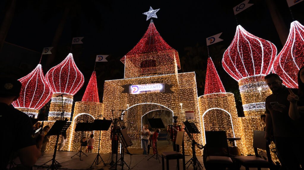 Após o acendimento, o público prestigiou apresentações culturais, entre elas um concerto da Orquestra Filarmônica Catarinense e apresentações das oficinas de teatro e dança do Parque Diamante + Energia, que completaram a noite com música, arte e emoção.