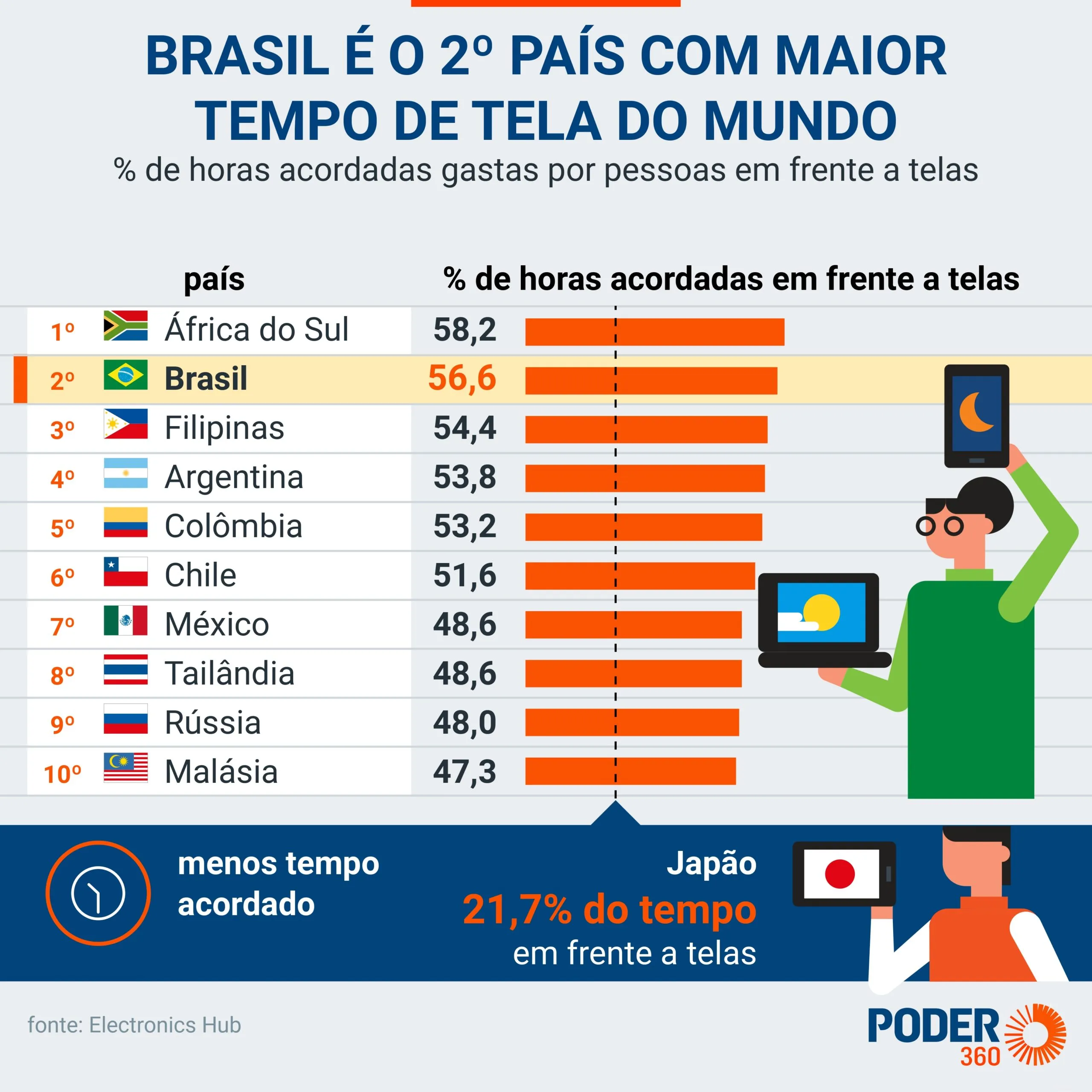 Brasil entre os países que mais usam telas no mundo