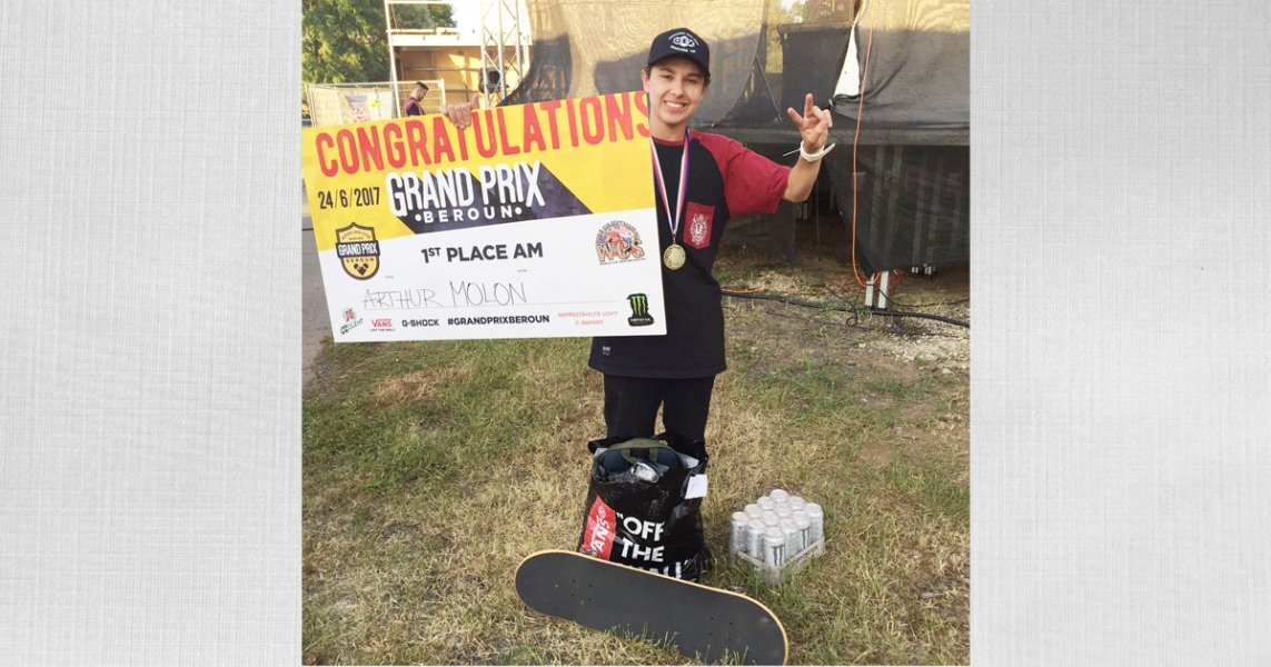 Com um talento que encanta, o jovem Arthur Molon, 17 anos, de Tubarão, não para de esbanjar qualidade e talento quando está em cima do skate. E dessa vez foi o público da República Tcheca que pôde ver o garoto tubaronense apavorar nas manobras.