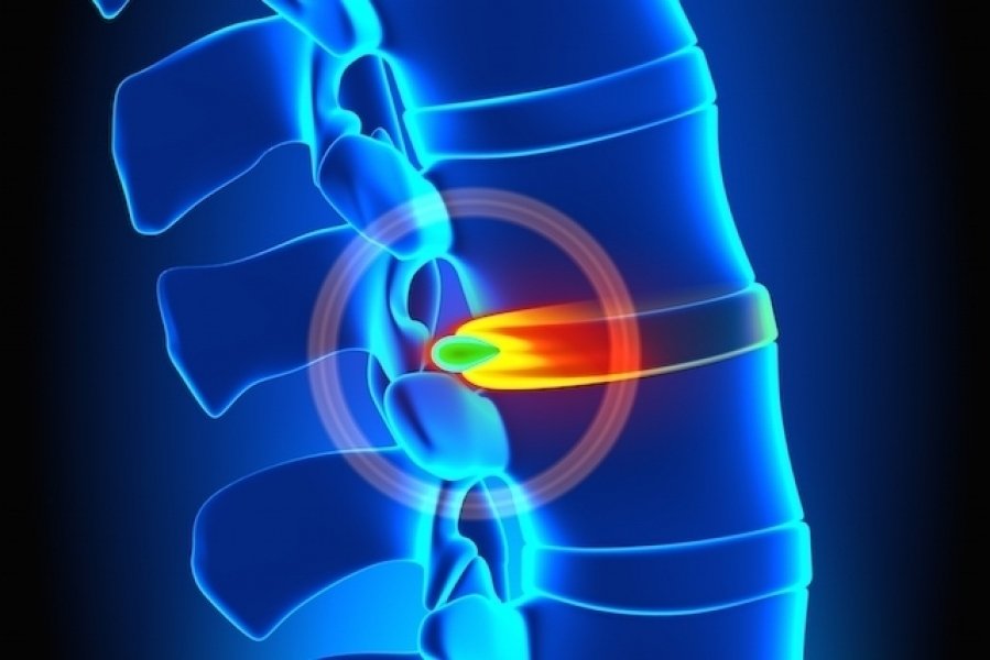 As vértebras são separadas por discos, estruturas cartilaginosas de pouca vascularização (circulação sanguínea). Na sua periferia, cada disco é constituído por um anel fibroso e, na sua parte interna, por uma estrutura ”gelatinosa” chamada de núcleo pulposo. A saída do núcleo pulposo ou o abaulamento do disco poderão provocar uma pressão nas raízes nervosas dando origem à hérnia de disco.