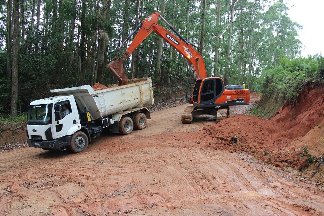 As obras para pavimentar o trecho de seis quilômetros entre Bom Retiro e Serrinha, até na divisa de São Ludgero com Tubarão, foram retomadas nesta quinta-feira (6) pela equipe da Secretaria de Obras, Viação e Urbanismo da Prefeitura.