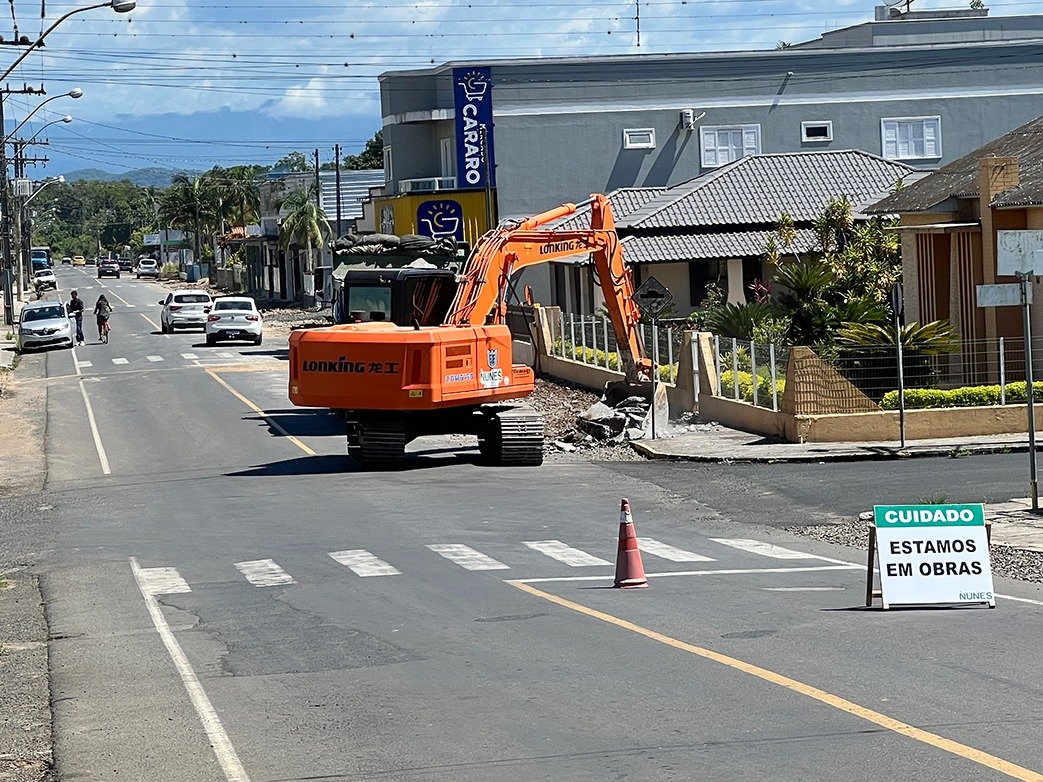 Os trabalhos iniciais ocorrem na rua Silvio Boff, no bairro Paraguai, onde máquinas começaram a atuar na retirada das calçadas antigas para dar lugar a uma nova estrutura de passeios e ciclovia.