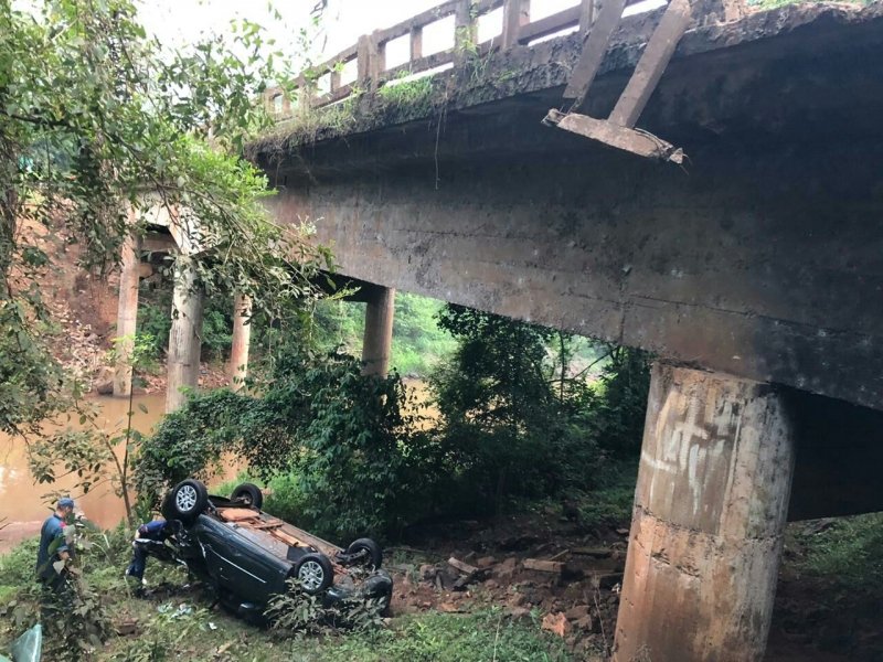 Duas pessoas ficaram feridas após um automóvel despencar de uma ponte na SC-283 no início da manhã desta quinta-feira, dia 7. O acidente foi no município de Seara, na ponte sobre o Rio Ariranha, pouco antes das 7 horas.