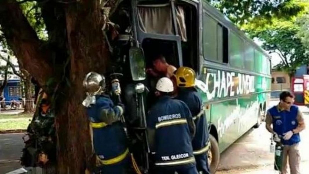 Um ônibus emblemado com o escudo e as cores da Chapecoense se envolveu em um acidente na tarde deste domingo, dia 3, no município de Maringá (PR). O veículo tem na lateral as escritas “Chape Juvenil – Formando Profissionais”. Mas em uma publicação no Twitter oficial, a Chapecoense afirmou que o coletivo não pertence ao clube.