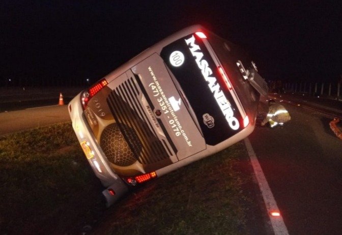 O coletivo, da empresa Massaneiro, de Brusque, tinha 54 pessoas a bordo. Eles vinham de Joinville, no Norte do estado, com destino à Gramado, na serra do Rio Grande do Sul. O veículo, saiu da pista por volta das 3h30 e arrastou por cerca de 50 metros no canteiro lateral.
