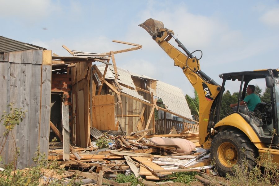 Máquinas da prefeitura de Laguna trabalham desde as 8h da manhã desta quarta-feira (13) na derrubada das casas construídas em um terreno que pertence ao governo do Estado, na região do bairro Mato Alto. A ocupação ficou conhecida como Loteamento Novo Horizonte, mas uma decisão liminar, expedida em dezembro, determinou a retirada dos moradores.