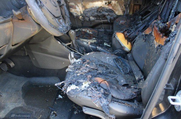 Incêndio de veículos e destruição de provas após os crimes.