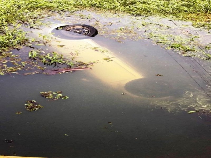 Ele disse que tentou manobrar o veículo, maas perdeu o controle e acabou caindo no riacho. Por sorte ele conseguiu sair a tempo, foi embora e aguardou o início da manhã para providenciar a retirada do carro.
