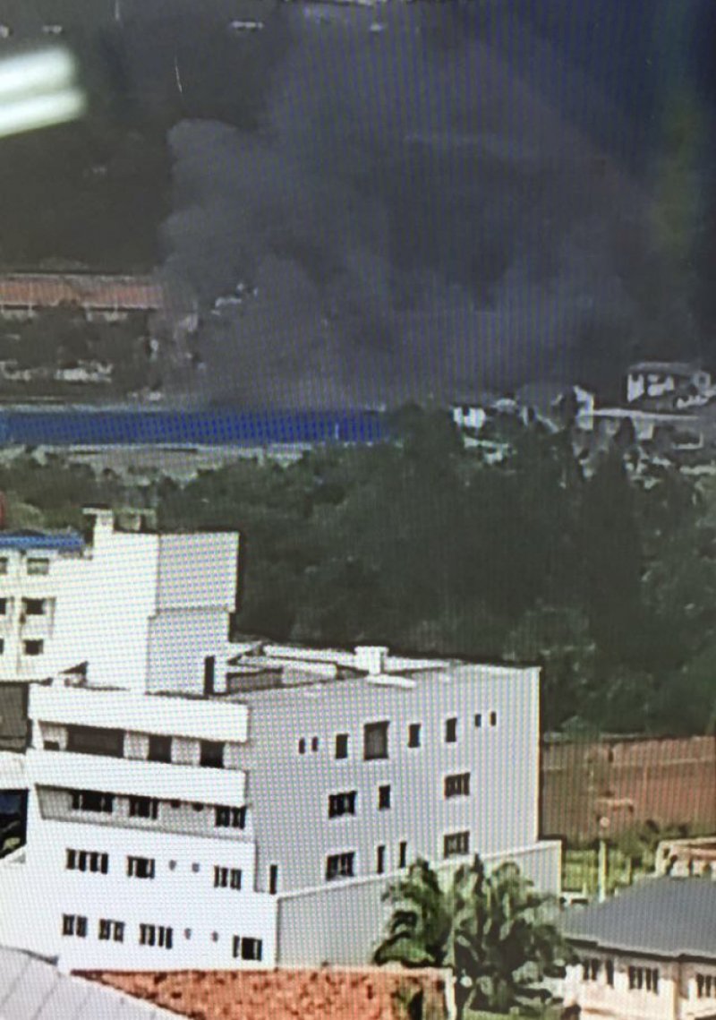 O galpão fica no bairro Samuel Sandrini. Não há informações sobre a proporção do incêndio nem se há vítimas.