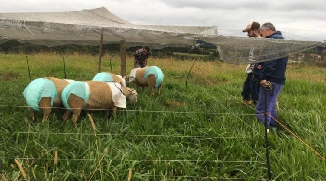 Em uma publicação no Facebook, o órgão explicou que na Estação Experimental em Lages, no Meio-Oeste, foram colocadas fraldas em ovelhas para medir a taxa de ingestão de pasto feita pelos animais.