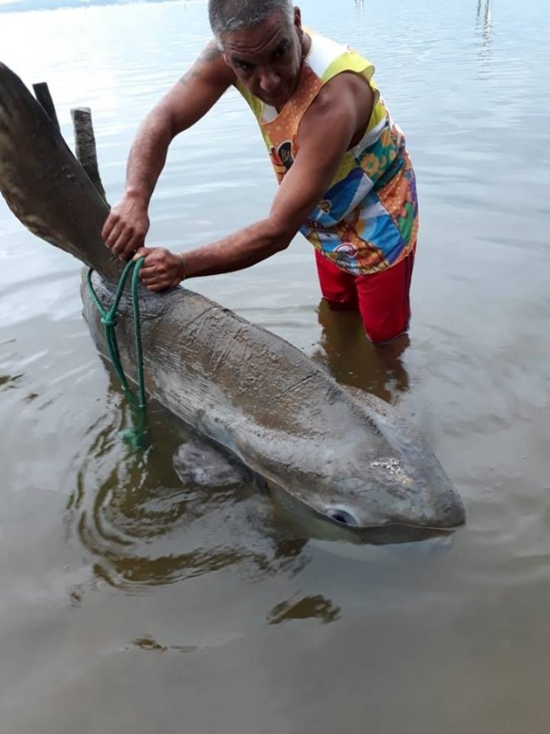 De acordo com o Portal Agora Laguna, a Polícia Militar Ambiental foi até o local, recolheu o peixe e devolveu ao mar.