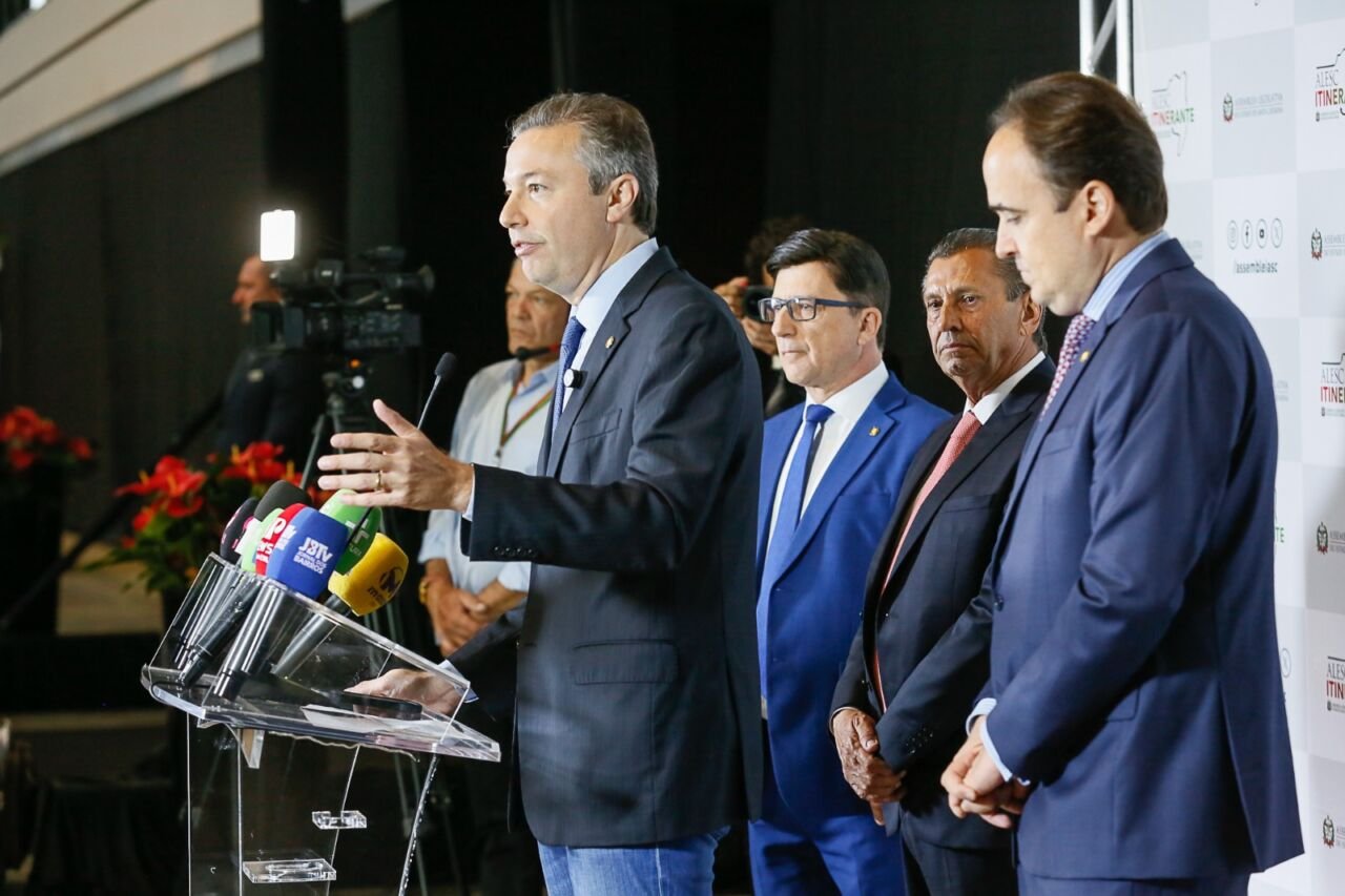 Na abertura do programa em BC, o presidente da Alesc, deputado Julio Garcia (PSD) e deputados que integram a Bancada do Vale do Itajaí abriram os trabalhos com uma entrevista coletiva. Dezenas de profissionais da imprensa local abordaram com os deputados assuntos de interesse da região.