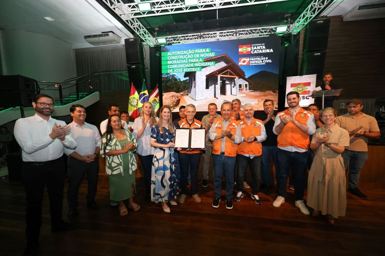 Durante o ato de investimentos em Proteção e Defesa Civil, que destinou R$ 419 milhões para proteção da população, especialmente no Vale do Itajaí, nesta quarta-feira, 1º de abril, em Blumenau, o governador Jorginho Mello assinou a autorização para a construção de mais 45 casas destinadas às comunidades indígenas impactadas pela Barragem Norte, localizada em José Boiteux. As novas unidades habitacionais serão distribuídas entre os municípios de José Boiteux, Vítor Meireles e Itaiópolis.