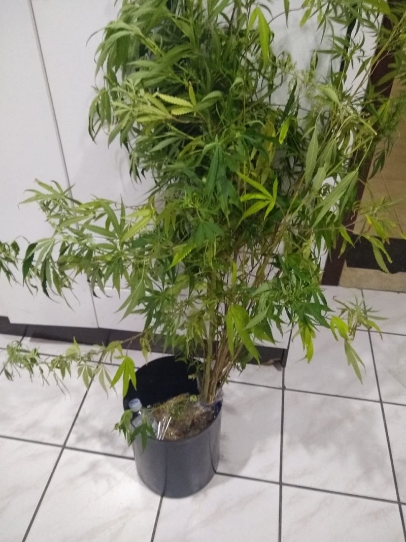 Durante incursão em meio à mata, os policiais chegaram à uma residência onde estavam um jovem e sua mãe, ali nada foi encontrado. No mesmo terreno, a cerca de 10 metros da casa, a guarnição encontrou sete pés da planta e ao questionar o rapaz sobre o plantio, ele confessou que cultivava a droga para consumo próprio.