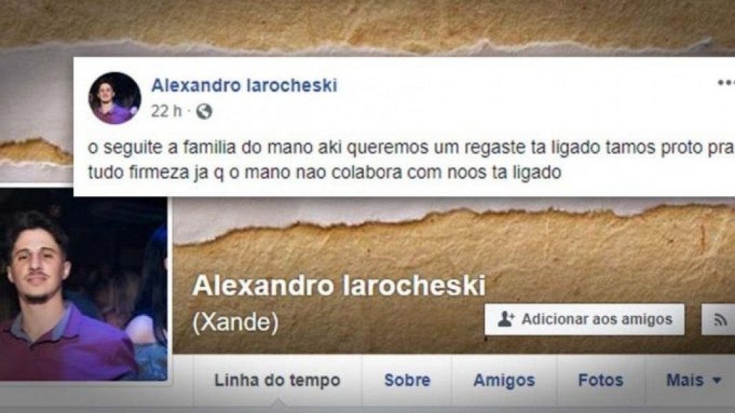 No perfil do Facebook de Alexandro foi postada uma mensagem nesta quarta (20) com pedido de resgate. A última postagem feita pelo próprio Alexandro foi no dia 17 de junho.