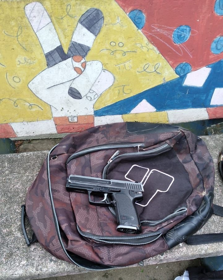 Eles estavam próximos de uma escola e ficaram nervosos quando viram a viatura se aproximar. Por suspeitarem que havia algo errado, em especial porque não era horário de aula, os PMs abordaram os menores. Na mochila, uma arma de brinquedo foi encontrada. Os dois adolescentes e o simulacro foram encaminhados para a Delegacia de Polícia Civil de Jaguaruna para os procedimentos cabíveis.