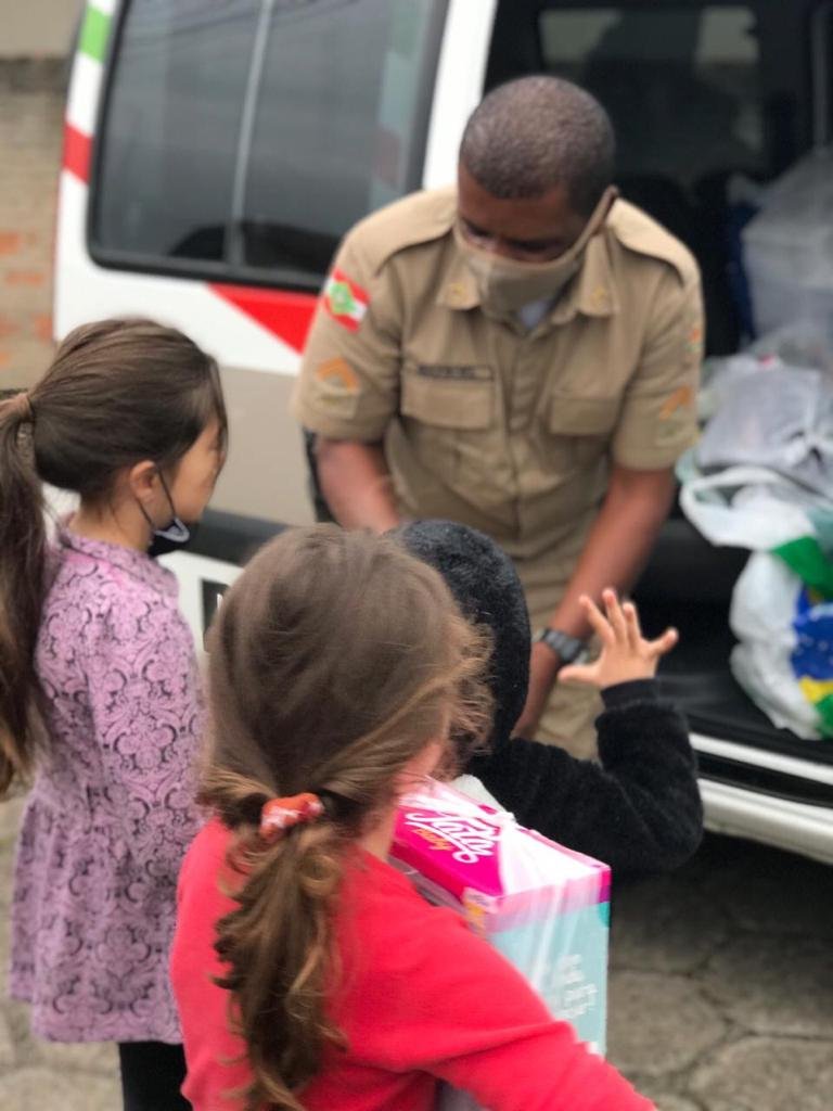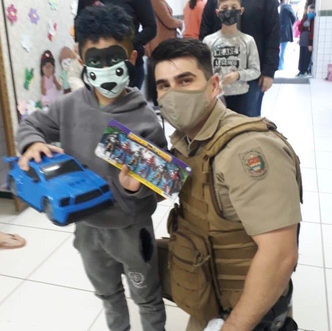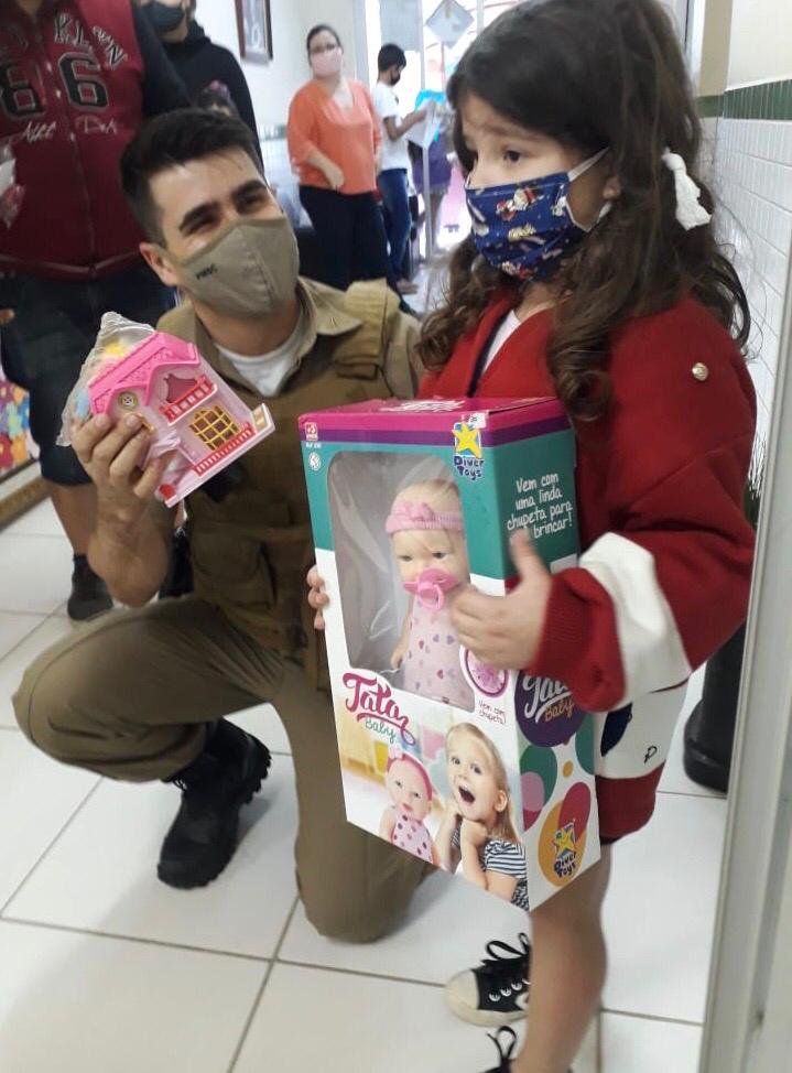 A ação faz parte de uma campanha da Polícia Militar de Santa Catarina “Doe Carinho, Doe um Brinquedo” que começou em 23 de setembro em alusão ao Dia das Crianças. Em Tubarão, a distribuição segue até o início da próxima semana.